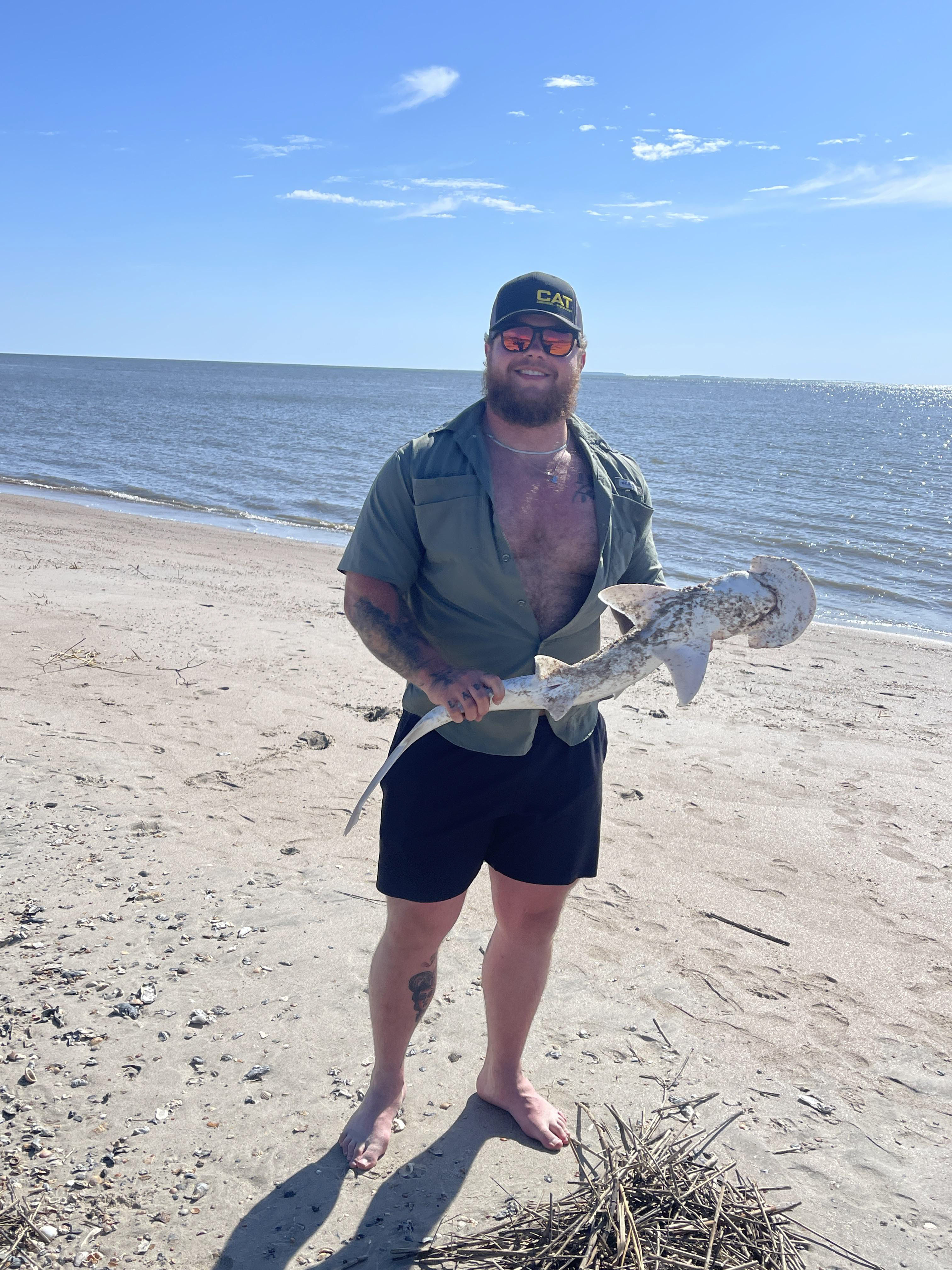 From NC. Mostly freshwater fishes for catfish and recently caught his first shark!